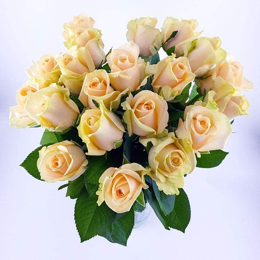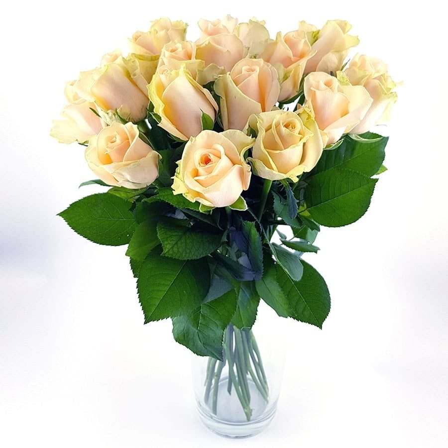 20 cream roses send their greetings. A bouquet of roses in the elegant color cream. Pure roses without embellishment.
