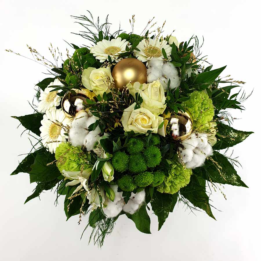The Angel Magic bouquet is as soft and elegant as angel wings. It consists of white blossoms and various shades of green combined with golden spheres.