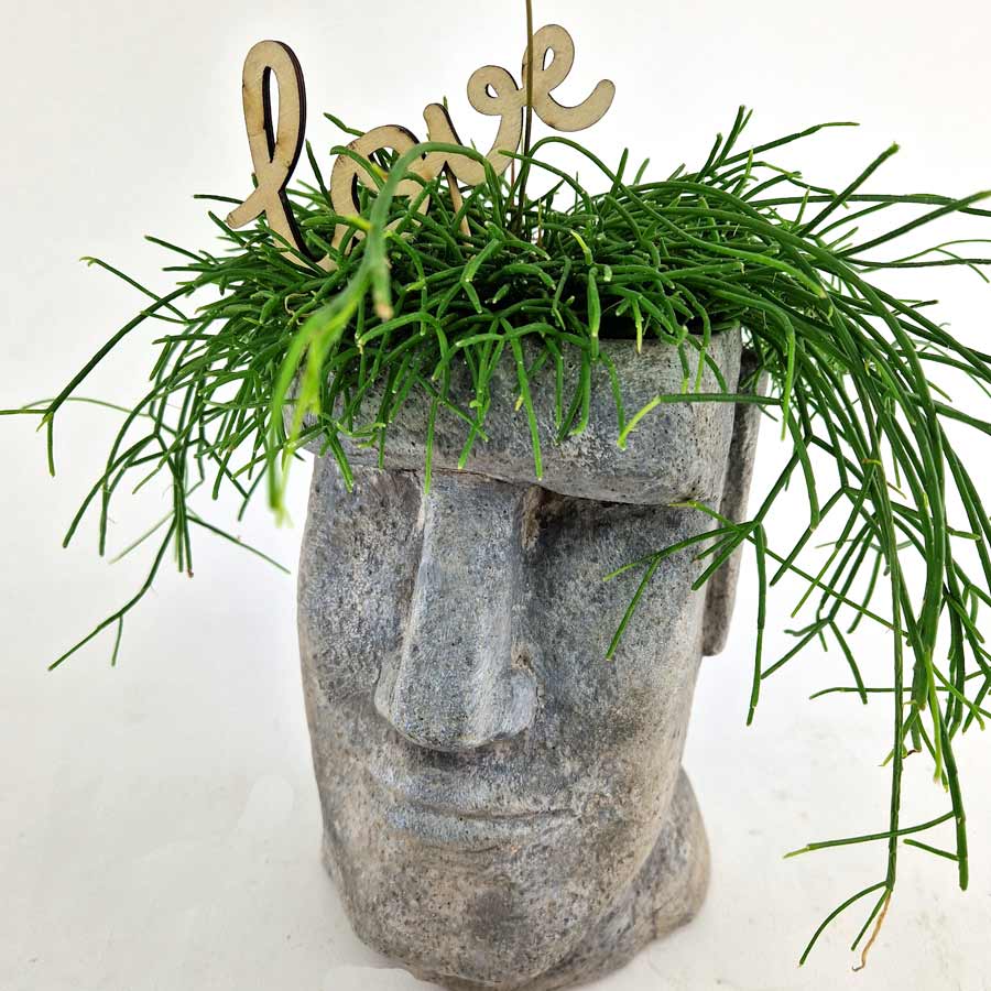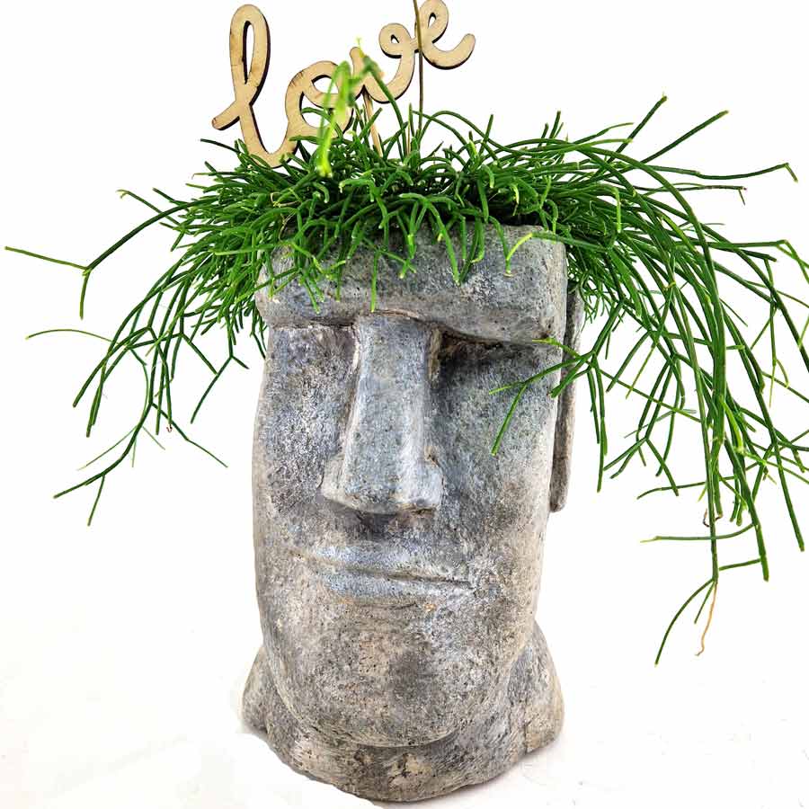 Our Moai head in Love only has love on its mind! Rhipsalis planted in a Moai head for a greener home with southern flair.