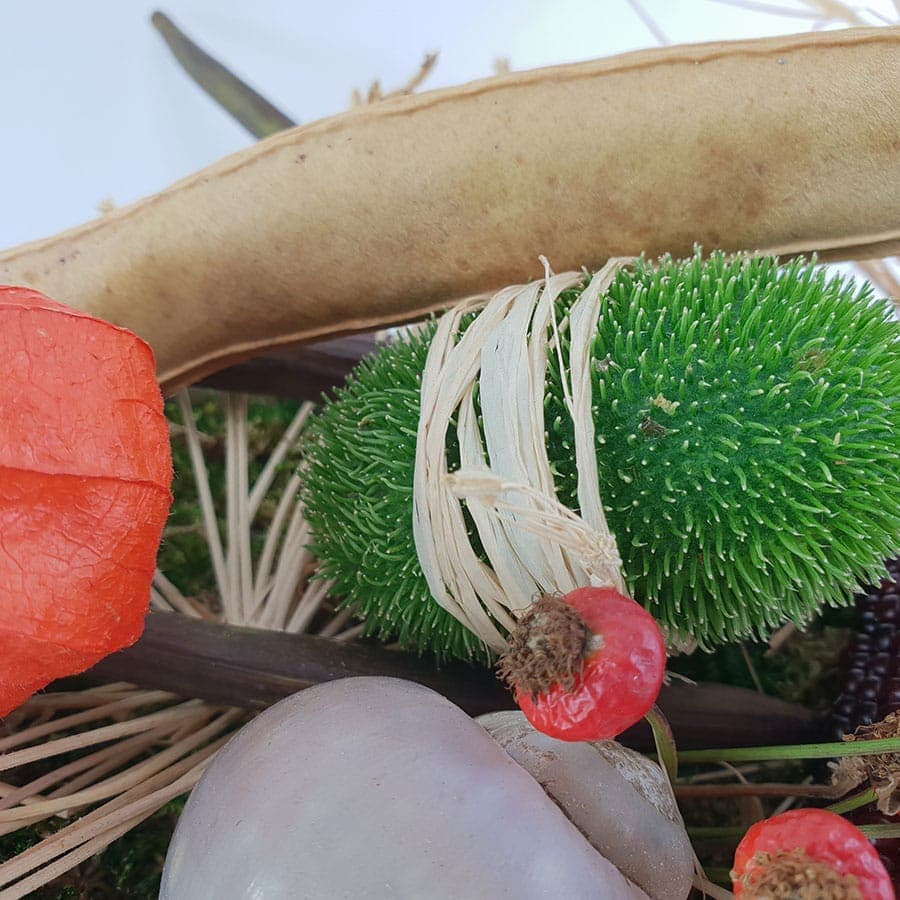 Ob fürs Zimmer, fürs Freie oder für die Tür, wir haben für alle Bereiche dekorative, herbstliche Dekorationen mit Beeren, Früchte und Blätter gestaltet.