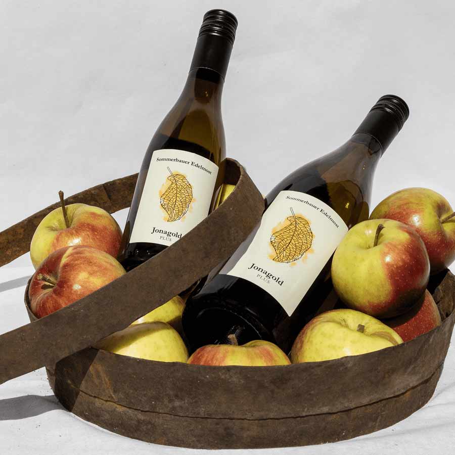 Reinsortiger Jonagold Edelmost. Er wird im neutralen Holzfass vergoren, wo er ca. 4 Monate unfiltriert gelagert wird. Direkt aus der steirischen Apfelstraße vom Obstbau Sommerbauer in Puch bei Weiz.