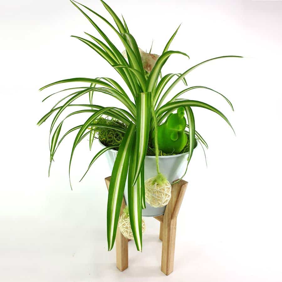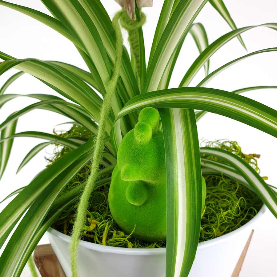 Dieser Lufterfrischer wurde von uns modern und österlich inszeniert. Ein Grünlilientopf Huhn in einem Metalltopf auf Ständer.
