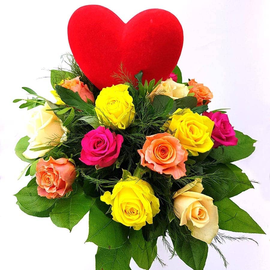 Der fröhlich bunte Rosengruß mit viel Herz für deine Liebsten.