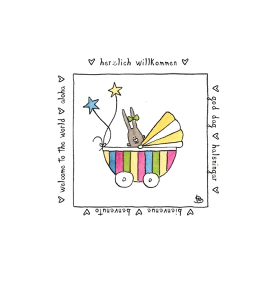 Die Karte Herzenskunst Herzlich Willkommen Baby ist eine Grußkarte im Format 15,5 x 15,5 cm Inklusive Umschlag.