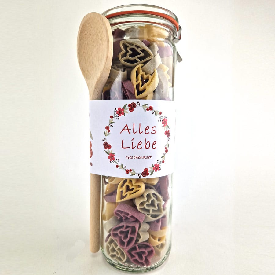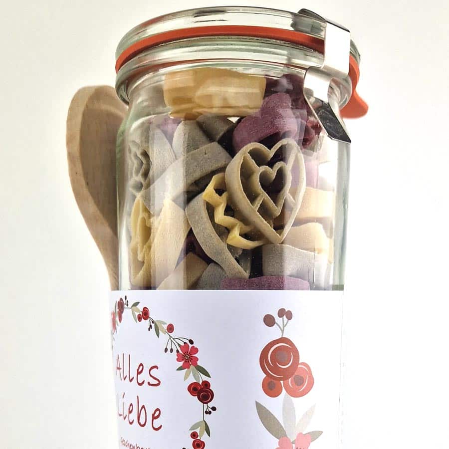 Lieblingsnudeln Herzen gemischt, Nudeln im Glas – Alles Liebe.