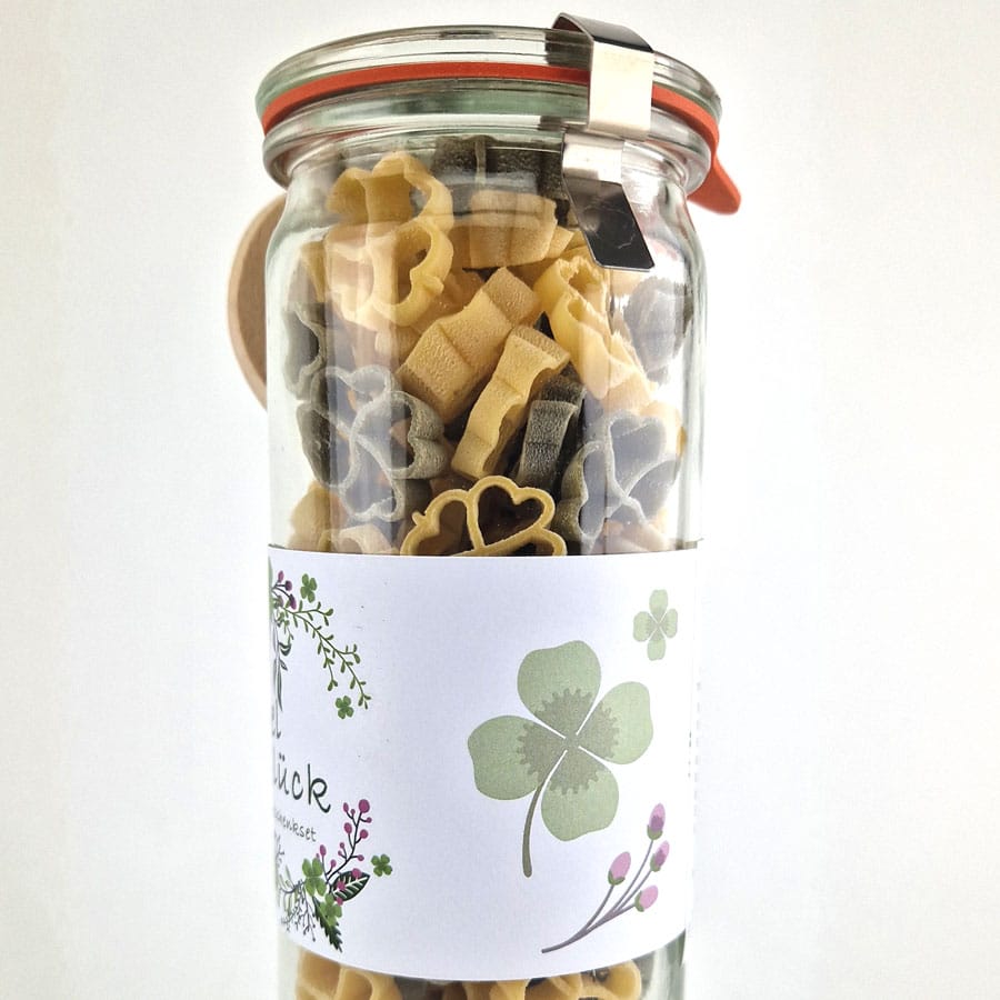 Lieblingsnudeln Kleeblatt gemischt, Nudeln im Glas – Viel Glück.