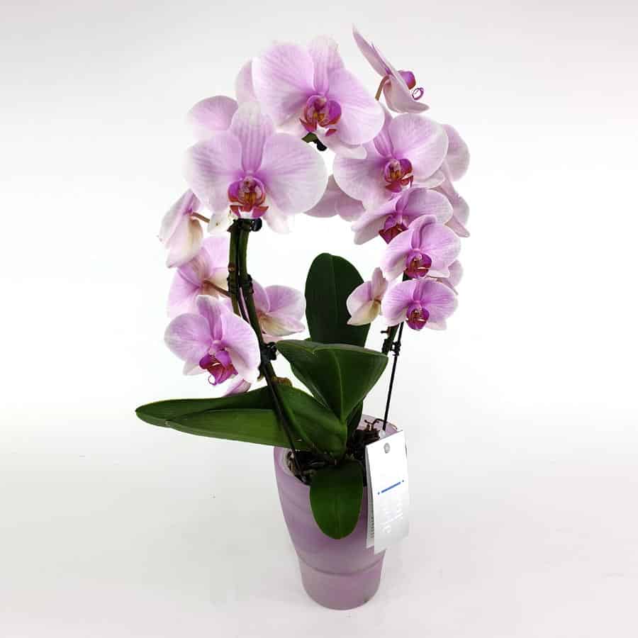 Eine ganz besondere Variante einer Orchidee ist dieser Phalaenopsis Bogen mit Übertopf. Damit die Blüten noch edler wirken, ist diese Orchidee speziell geformt.