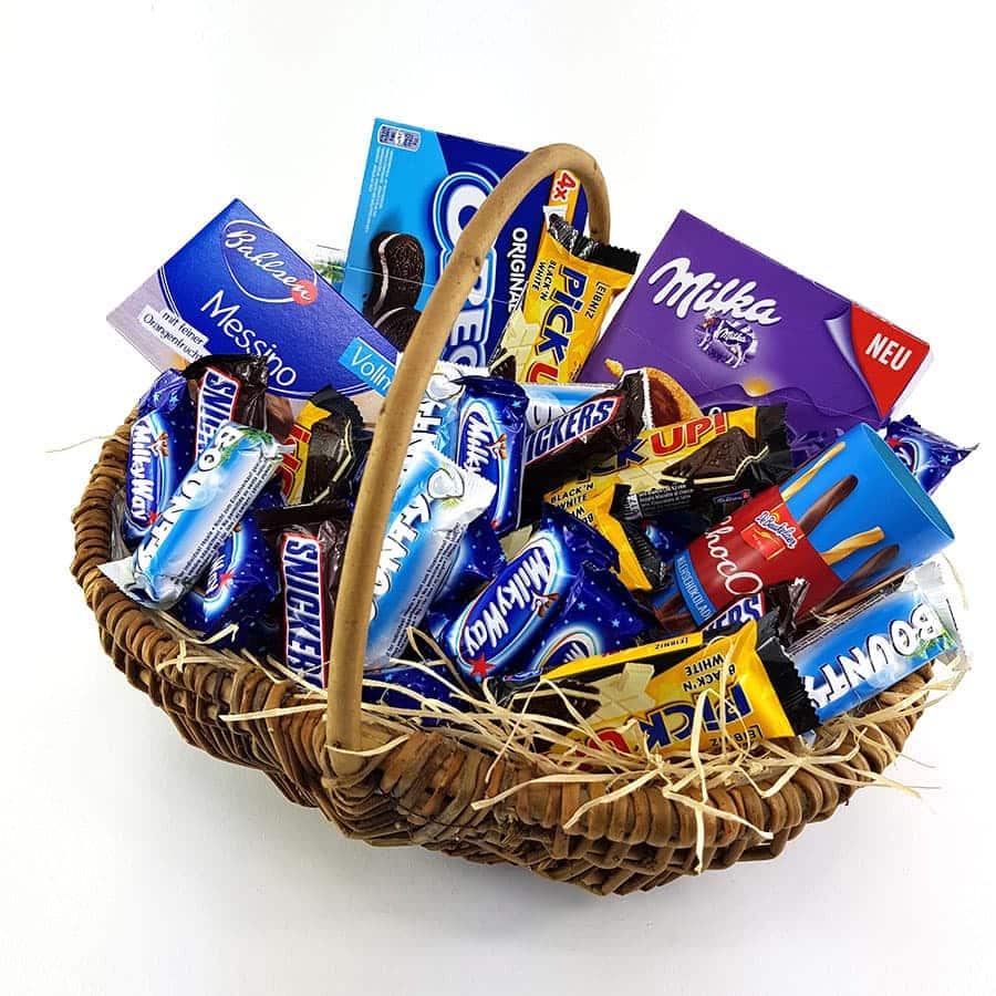Dieser Weidenkorb wird zum Schokokorb vor allem durch seine genussvolle Fülle.