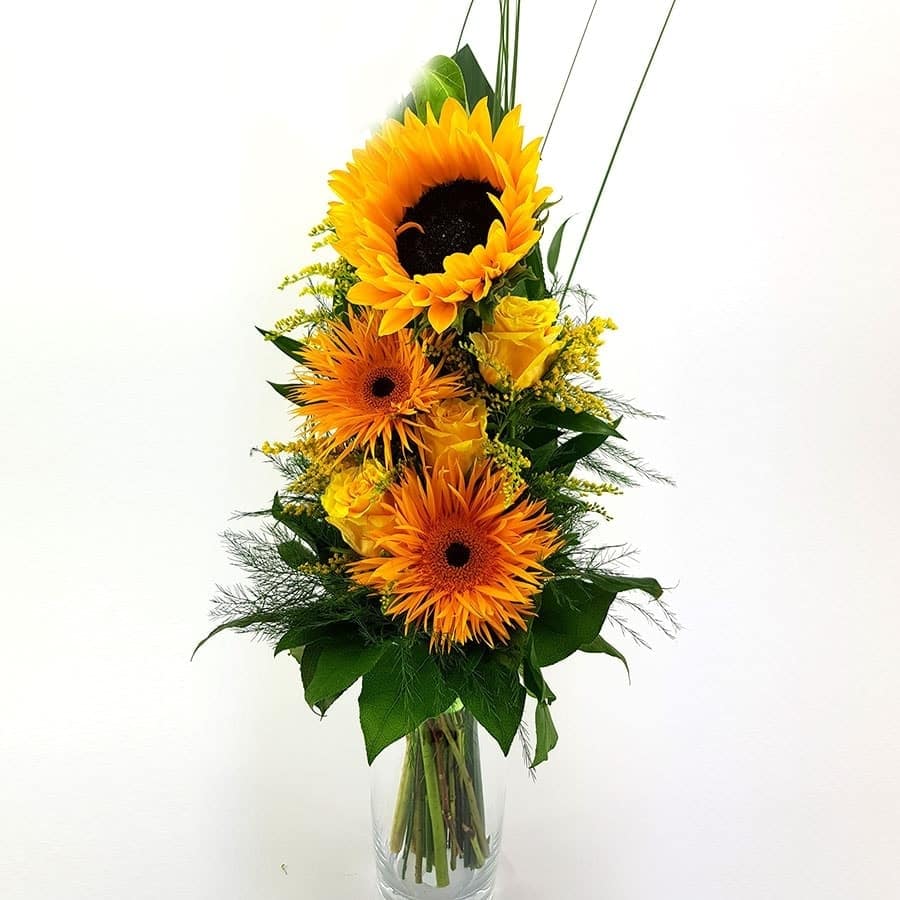 Dieser Strauß erhellt den Tag wie ein Sonnenaufgang und lässt ein jedes Herz strahlen.